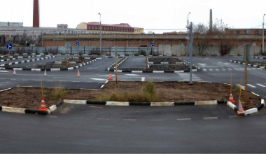 Развернуться необходимо, не задев границ разметки. Данное умение в дальнейшем поможет осуществлять развороты во дворах, тупиках, на парковке и при любой другой необходимости.
